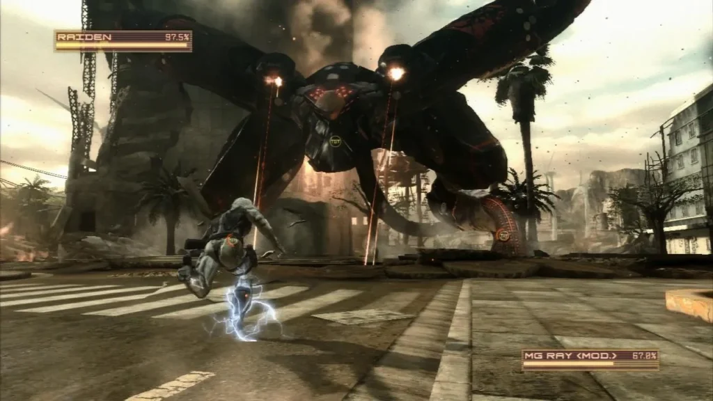 Lo que sigue es una pelea tan over the top que, honestamente, no puedo sino amar, pues en medio del espectáculo que implica pelear con literalmente un Metal Gear, Raiden se luce partiendo por la mitad al icónico tanque bípedo Ray. Una secuencia donde la banda sonora eleva y transforma el brutal momento, en una de las escenas más icónicas de la franquicia.