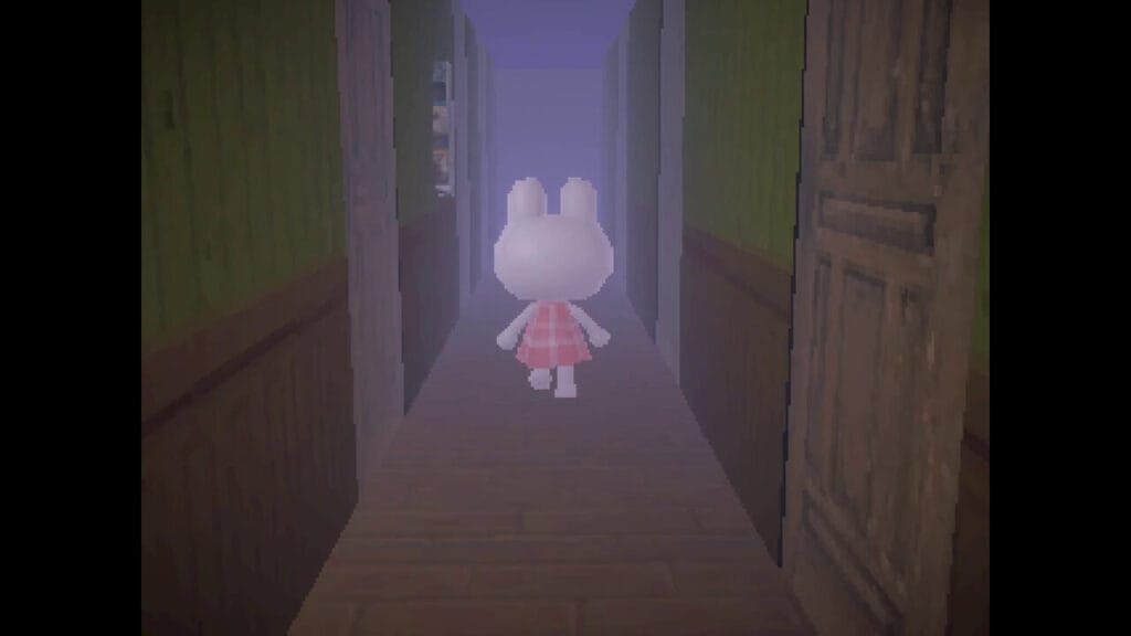 Luego, como ya mencioné, el argumento es sencillo. No quiero hacer spoilers; sin embargo, creo que nada se pierde al decir que trata sobre una familia que se va de vacaciones a una cabaña cerca de la costa y que los eventos no se desarrollan como la protagonista, una conejita antropomórfica, quisiera. La premisa es casi un cliché, pero funciona ya que no pretende ser otra cosa que lo que es: un videojuego corto que logra espantar de cuando en cuando. Respecto al desenlace de esta historia, no sé muy bien qué decir.