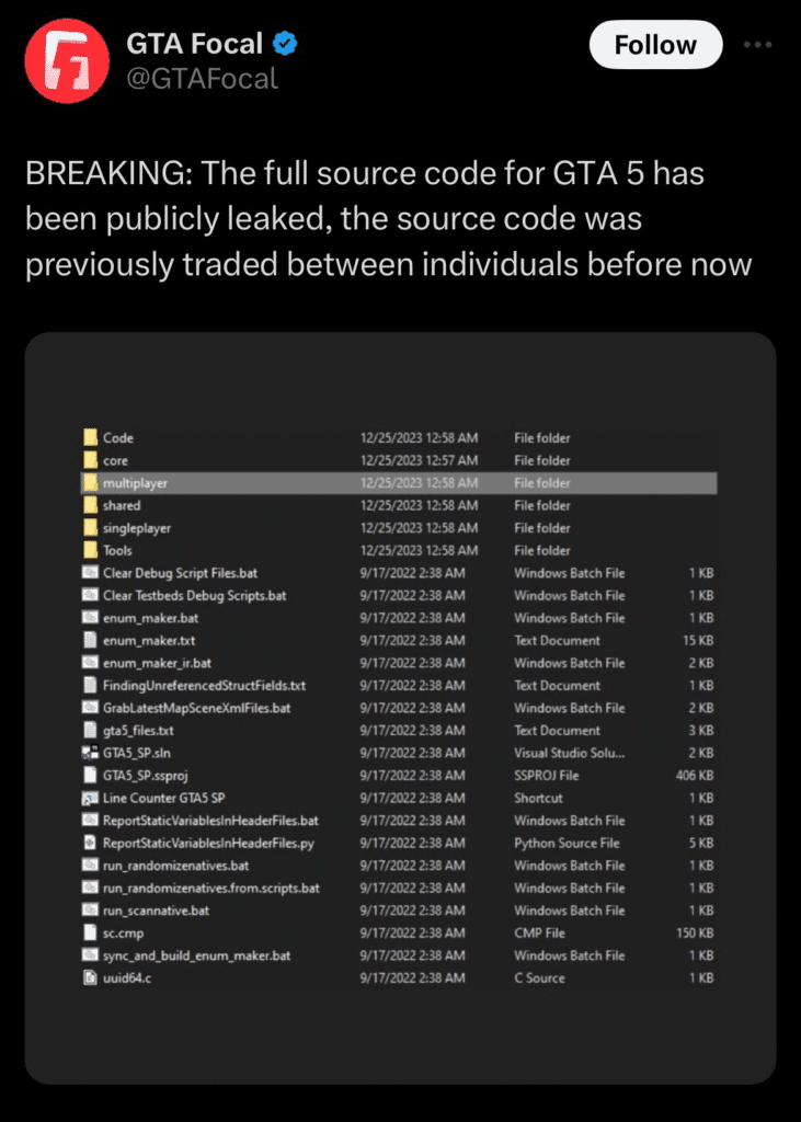 En esta ocasión su piedra angular fue la principal afectada. El código fuente de GTA V fue propagado a través de chats de Discord y Telegram. Ya no había vuelta atrás. Si queremos dimensionar un poco la situación, la filtración del código fuente de GTA V rompe por completo las medidas de seguridad aplicadas por Rockstar para impedir la creación y/o modificación de los archivos de juego. Esto pudiendo ser a través de la creación de mods complejos, o la creación de “trainers” o programas externos para trucar los sistemas del juego; pero también, podría implicar la minería exhaustiva de datos prioritarios de Rockstar, y el desarrollo de programas que exploten vulneraciones en el código del juego. Lo que por supuesto pone en riesgo la infraestructura online de GTA V, que bien sabemos es el corazón de este -ya longevo- título.