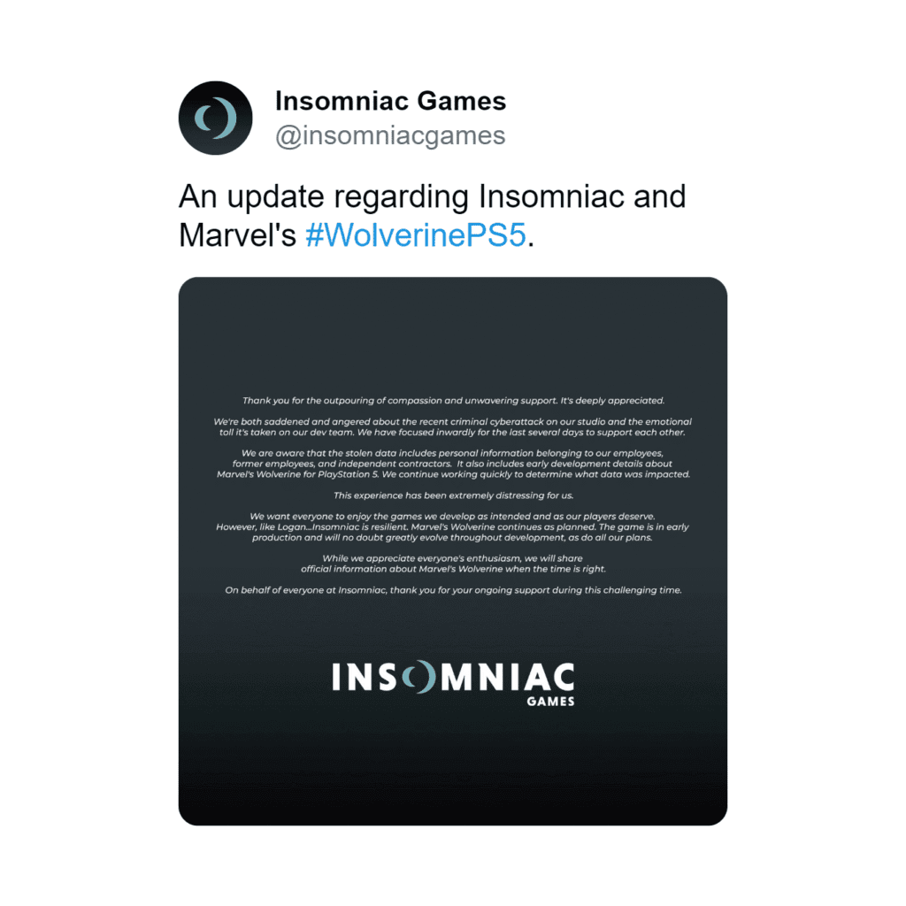 En términos humanos, la información privada de sus empleados puede llevar a delitos de suplantación de identidad junto a que los ánimos del equipo de seguro estarán por los suelos -tal como se puede ver en su comunicado-. En términos de lanzamientos, es claro que el ansiado juego de Wolverine -programado para 2026- verá, de alguna manera, afectado su desarrollo. Sobre todo, por la versión jugable en etapa Alpha que se propagó por toda la red.